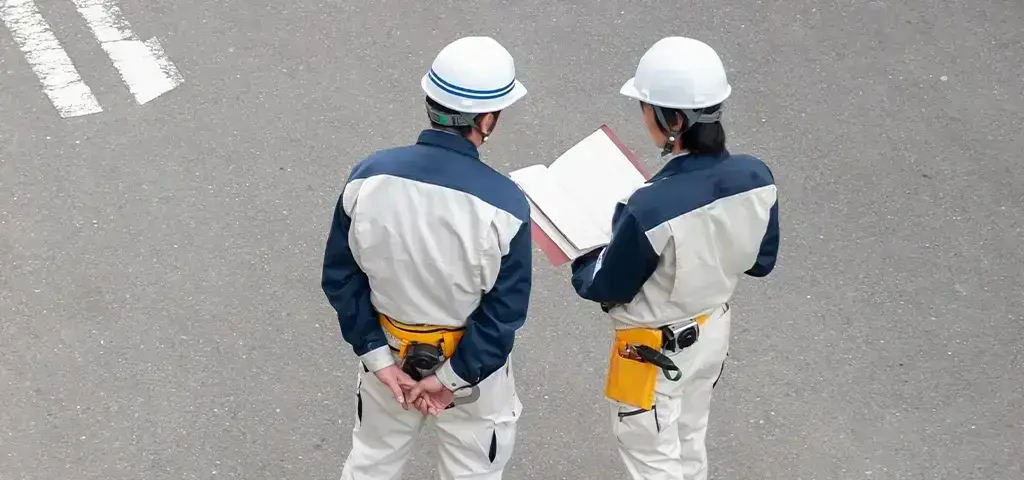 8時頃に事務所へ集合し、当日の作業に関するミーティングを行います。ミーティングでは作業の内容だけでなく、安全面での注意事項などを伝えることもあります。スケジュールの確認や進捗状況なども把握しておきましょう。